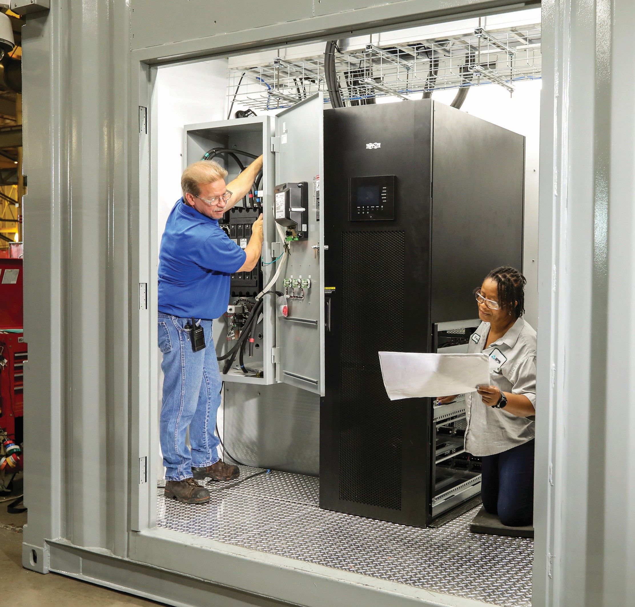 IPS Custom Equipment engineers manufacture and fabricate electrical houses (e-Houses) for industrial and commercial applications. These e-Houses meet safety and reliability standards defined by ANSI, IEEE, UL, CSA, NEMA, and NEC.